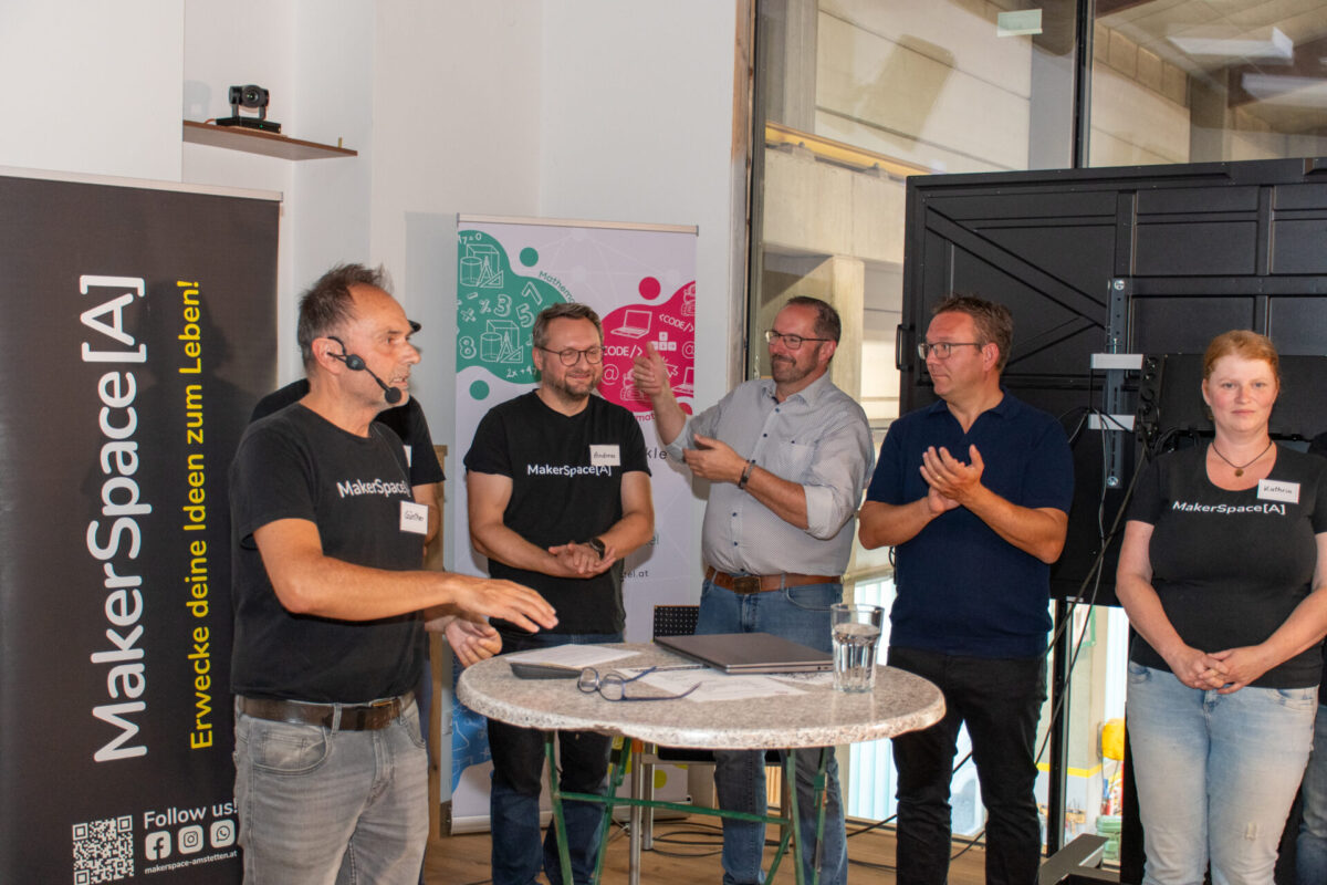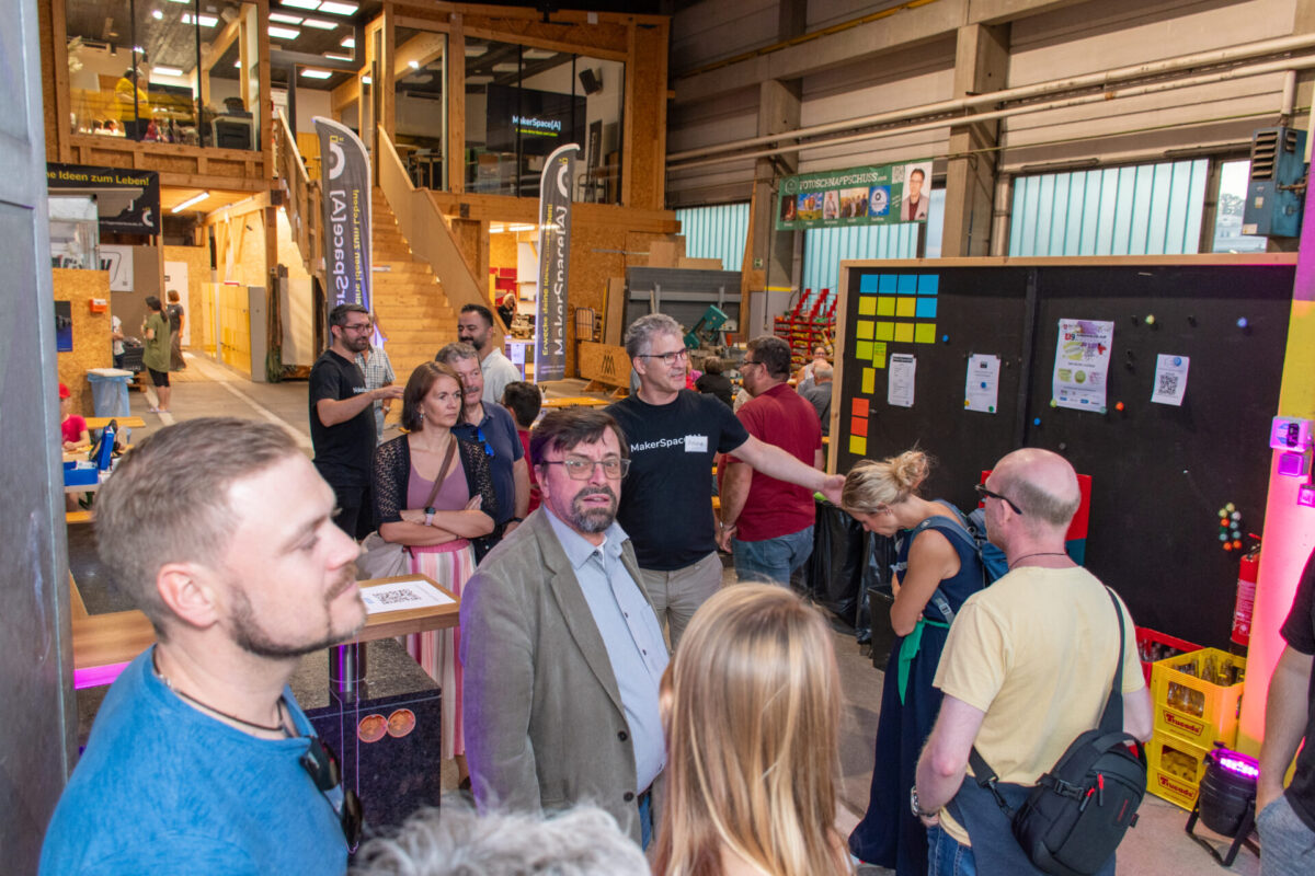 Ein Verein wie der MakerSpace[A] blüht durch starke Partnerschaften. Deshalb hat es uns besonders gefreut, zahlreiche Gäste aus Politik, Wirtschaft und befreundeten Organisationen begrüßen zu dürfen. Ein herzlicher Dank gilt der Stadtgemeinde Amstetten, vertreten durch Bürgermeister Christian Haberhauer und Vizebürgermeister Markus Brandstetter, für die kontinuierliche Unterstützung.